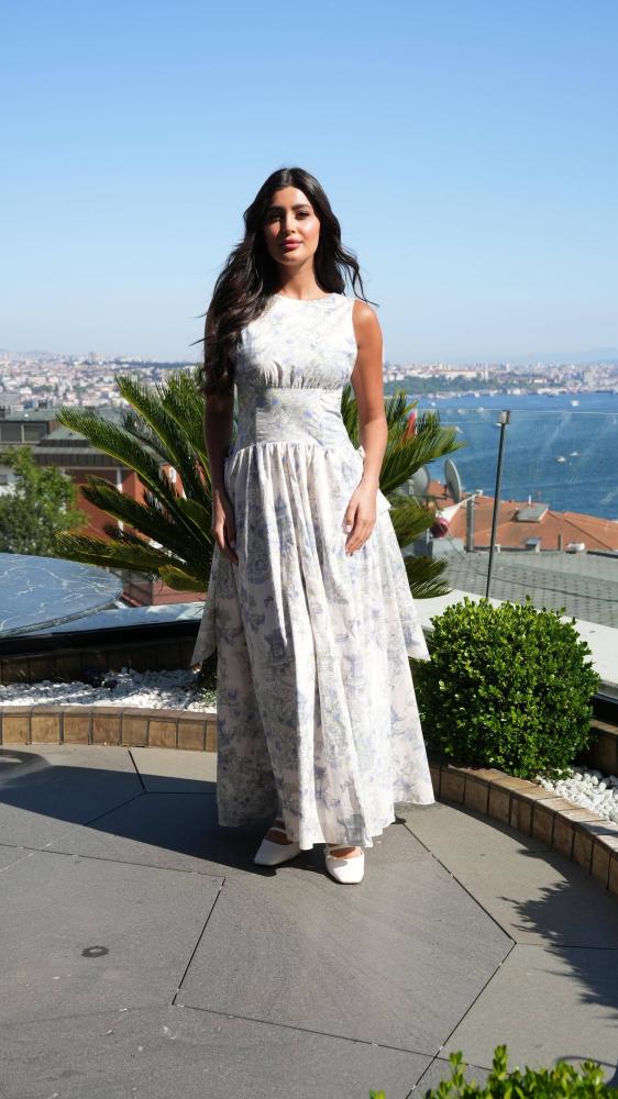 فستان طويل من خامة القطن الكوري قابل للتصغير و التكبير عبر رباط من الخلف