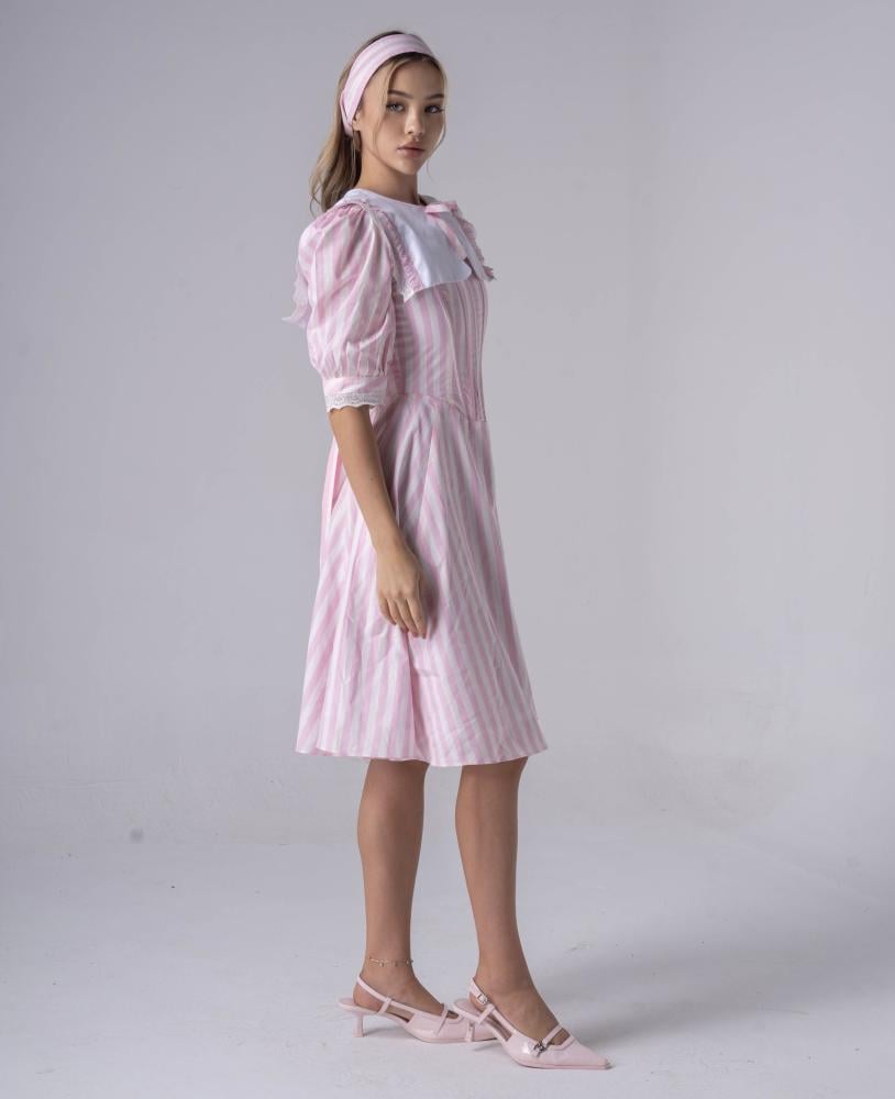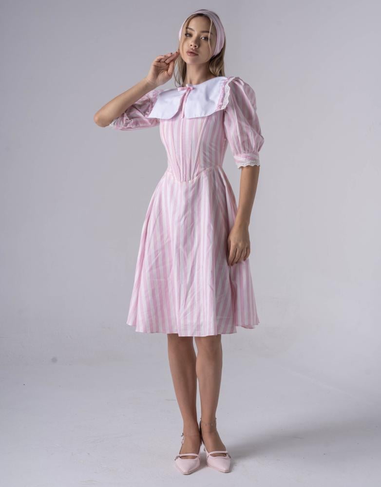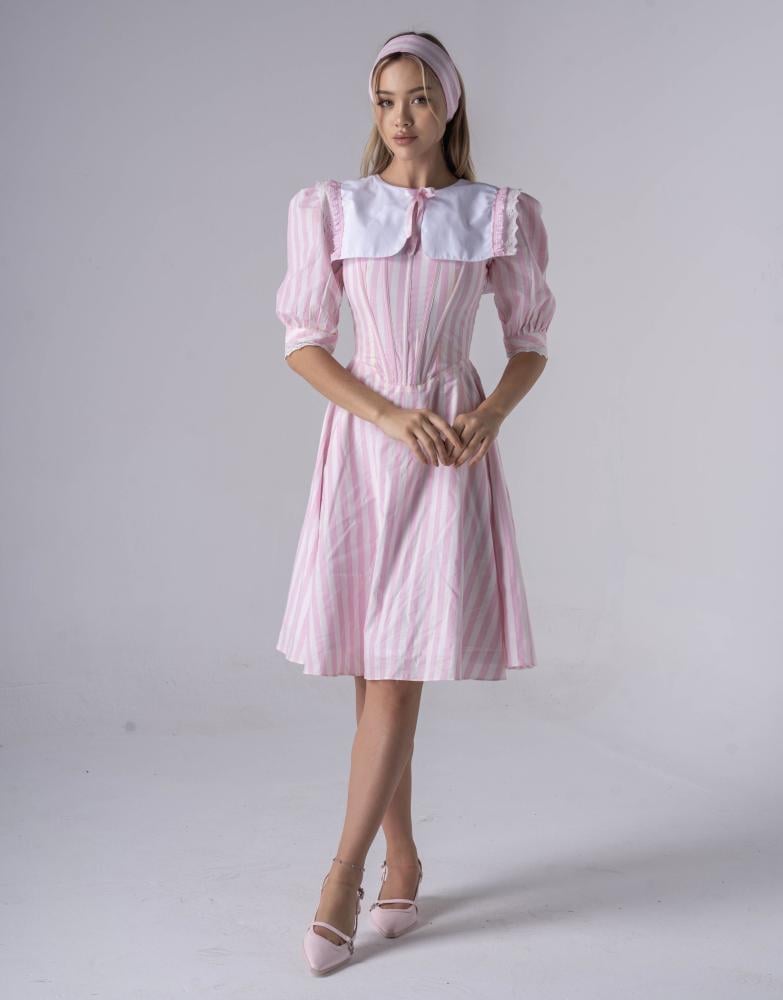 فستان متوسط الطول مع تصميم الكورسيت بخامة القطن الكوري المقلم