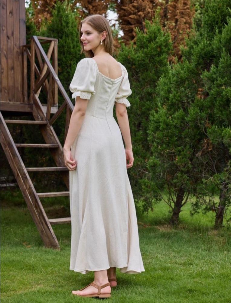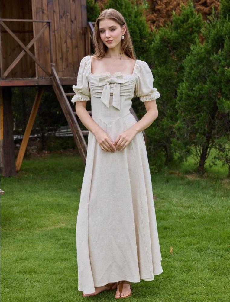 فستان من خامة اللنن المميز التركي ،،بقصة انسيابية رائعة تجعل الجسم نحيلاً وطويلا..بقصة صدر ريفية ذو جمالية وفتنة