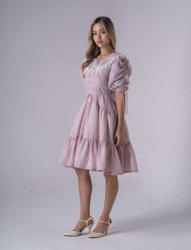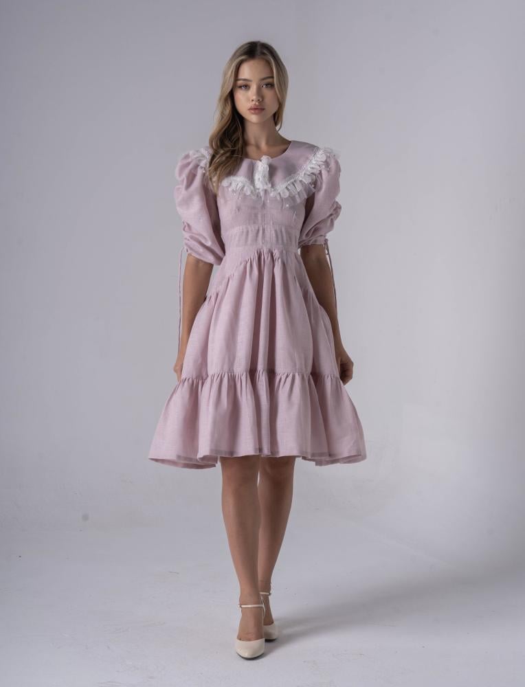 فستان من خامة النن عالي الجودة مع ربطات من الخلف و عند الاكمام لتعديل الحجم