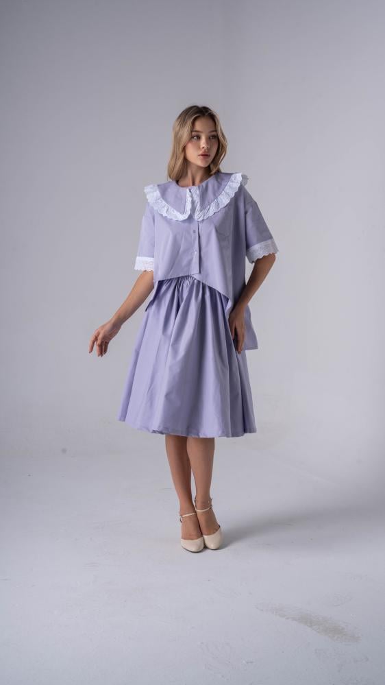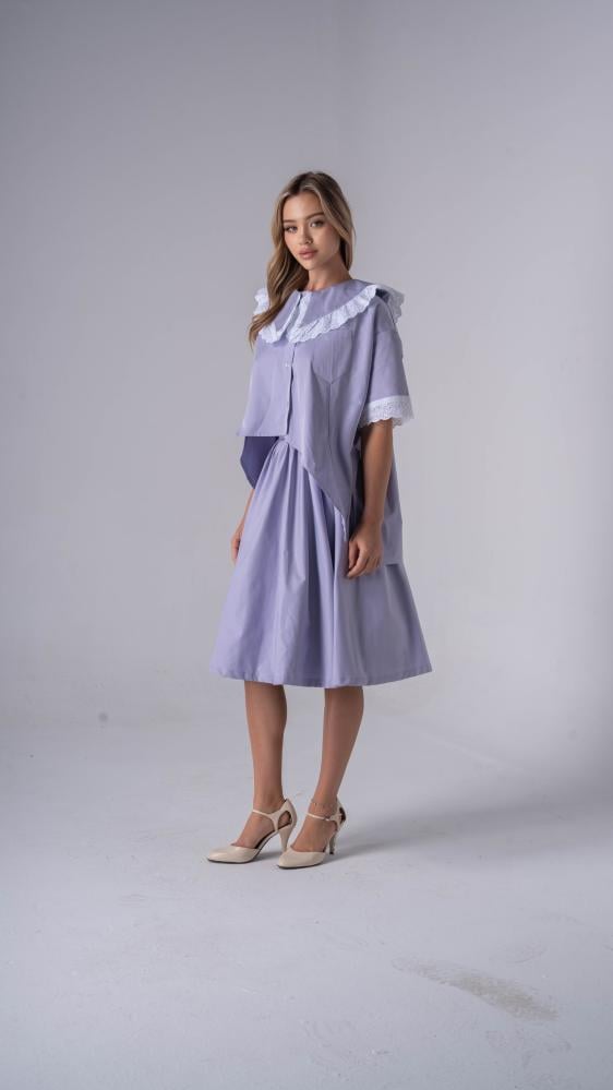 طقم من قطعتين من خامة تفته الكوري المطفي بتصميم واسع و مميز ( 14 الى 20 سنة)