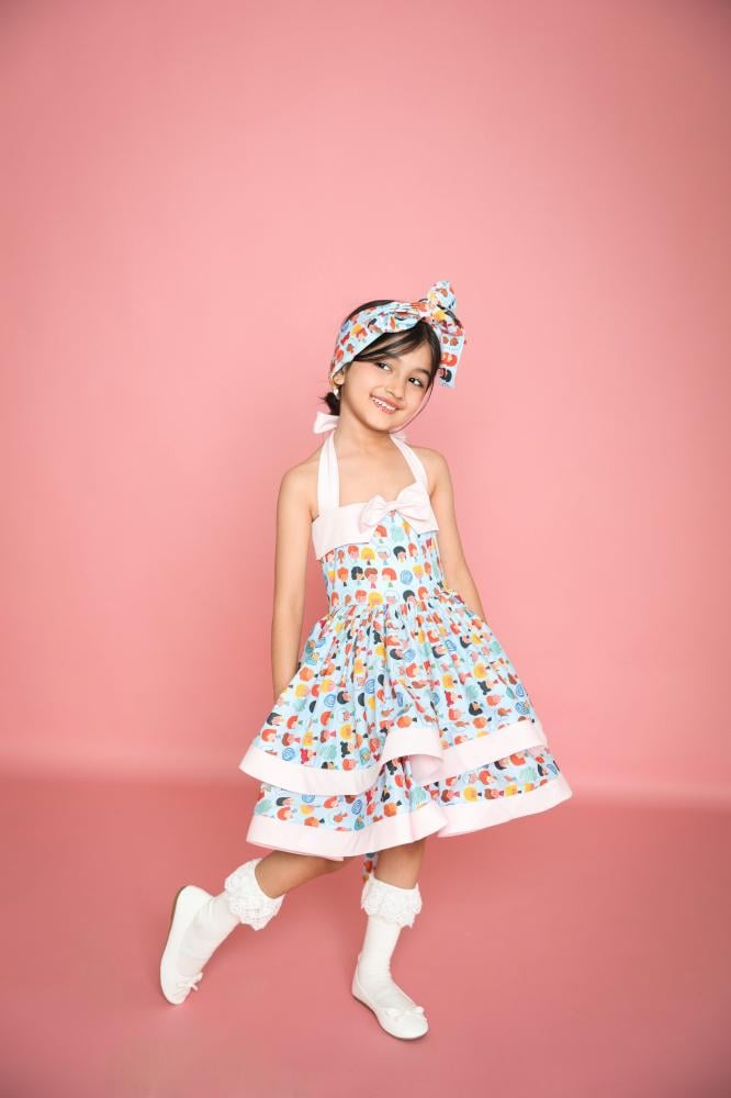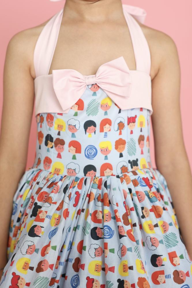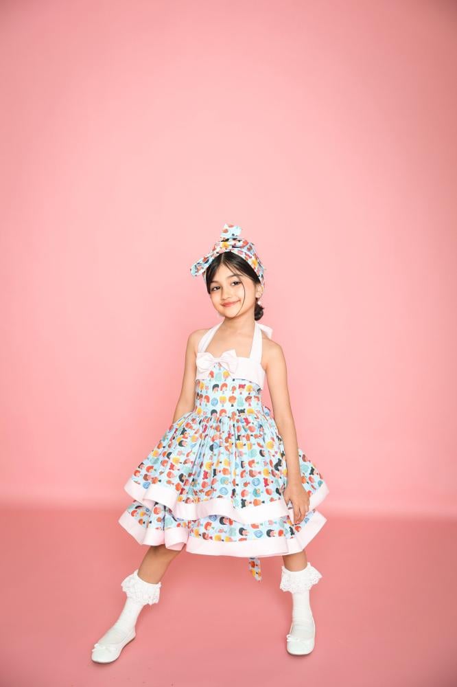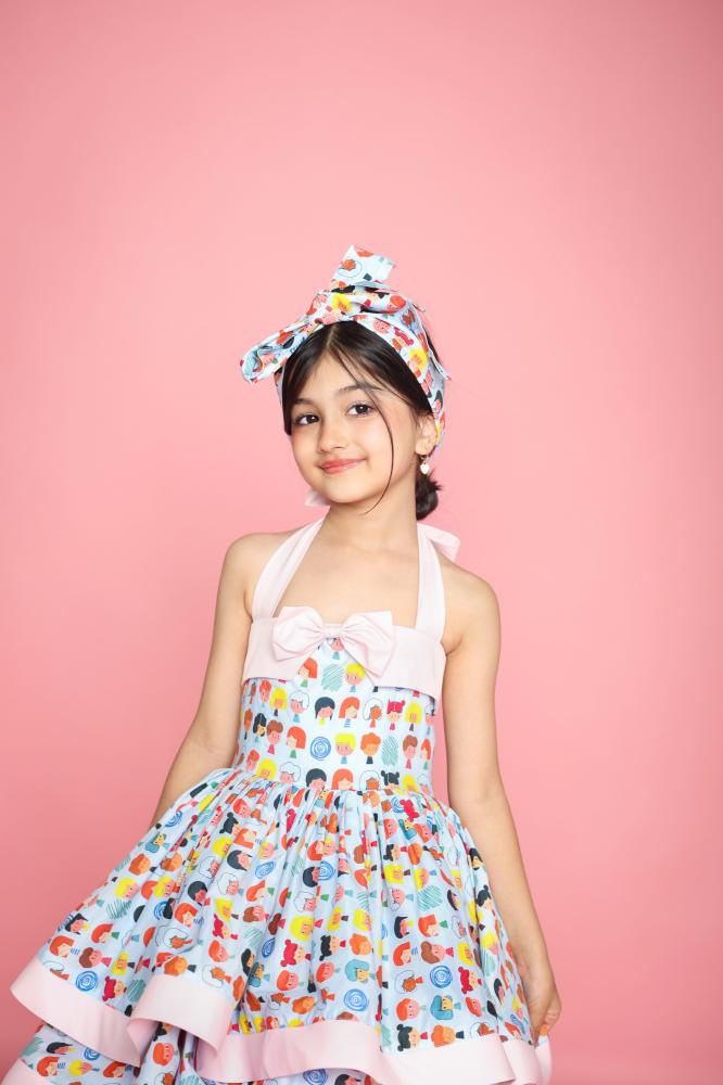 فستان فيسز برسومات لطيفة و ربطة خلف العنق بخامة القطن الكوري الخفيف