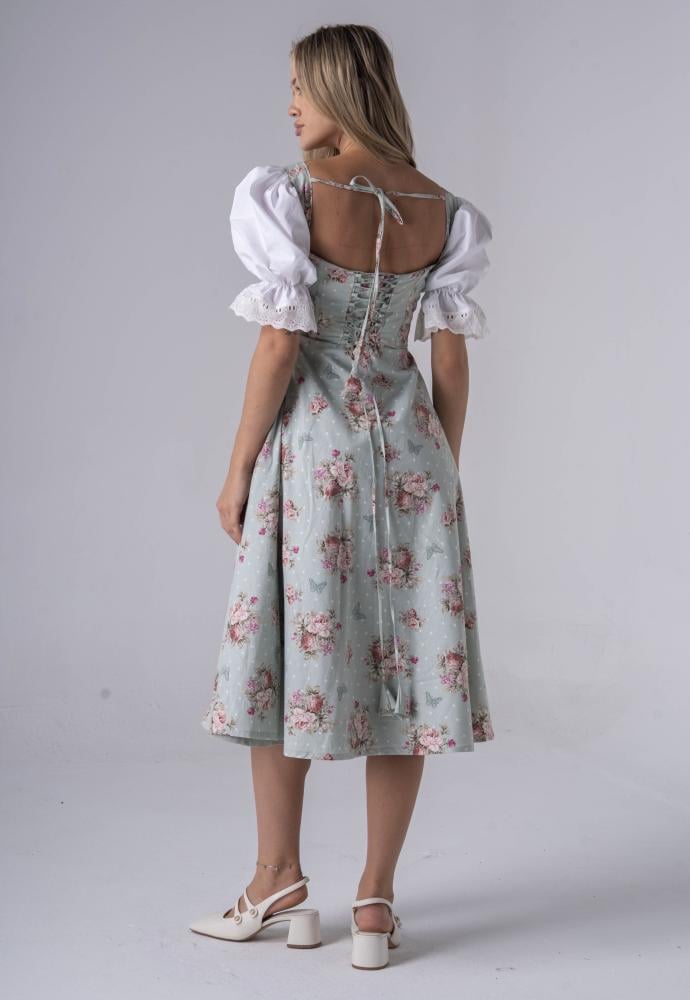 فستان متوسط الطول مع تصميم الكورسيت و رباط خلف الظهر بخامة القطن بيمبو التركي