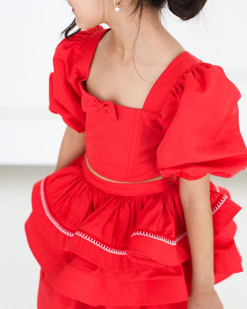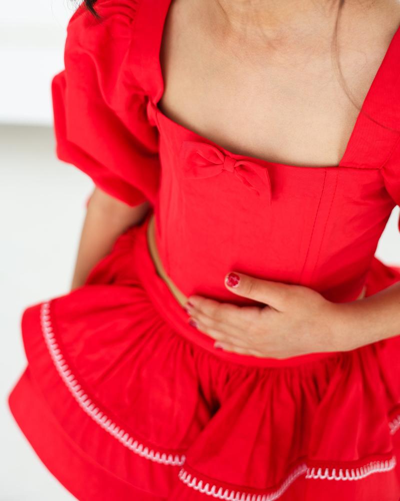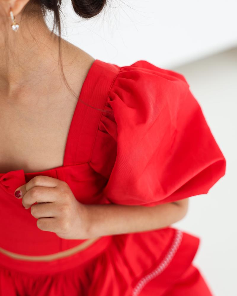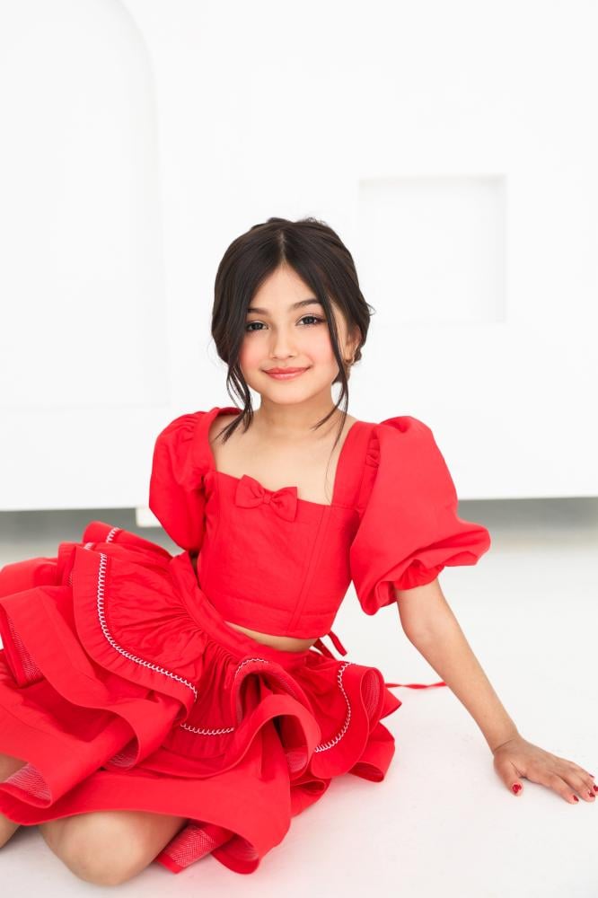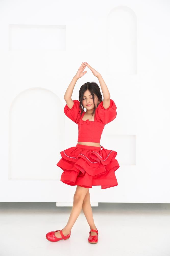 (وردة) _ بدلة من خامة الحرير المجعد الناعم خامة كورية عالية الجودة ,,التنورة من ثلاث طبقات,, و البدي مزين بحبال لزيادة الحجم و تصغيره